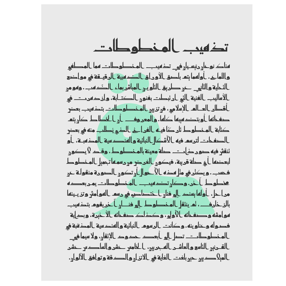 «Abassi» is a modern Arabic headline face Originally developed as a simplified face, its design recalls the Arabic Calligraphy works from the 9th–10th century which usually written with Ink and gold on parchment, The strong treatment of some letters gives the traditional style a modern feel to the design & for more readability and legibility.