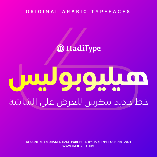 Heliopolis Font supports Arabic, Persian, and Urdu languages.