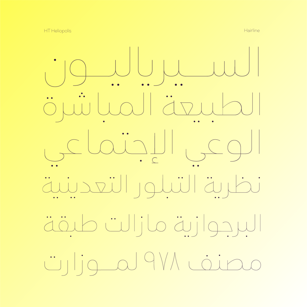 Heliopolis Font is a Kufic multilanguage typeface drawn for screens. We meticulously designed Heliopolis Font to work with small text sizes while maintaining exceptional beauty that aligns with today's technological diversity. The Heliopolis Font features an entirely new look and comes in several contrasting weights to fully meet your preferences, with sharp edges and elegant rounded corners.