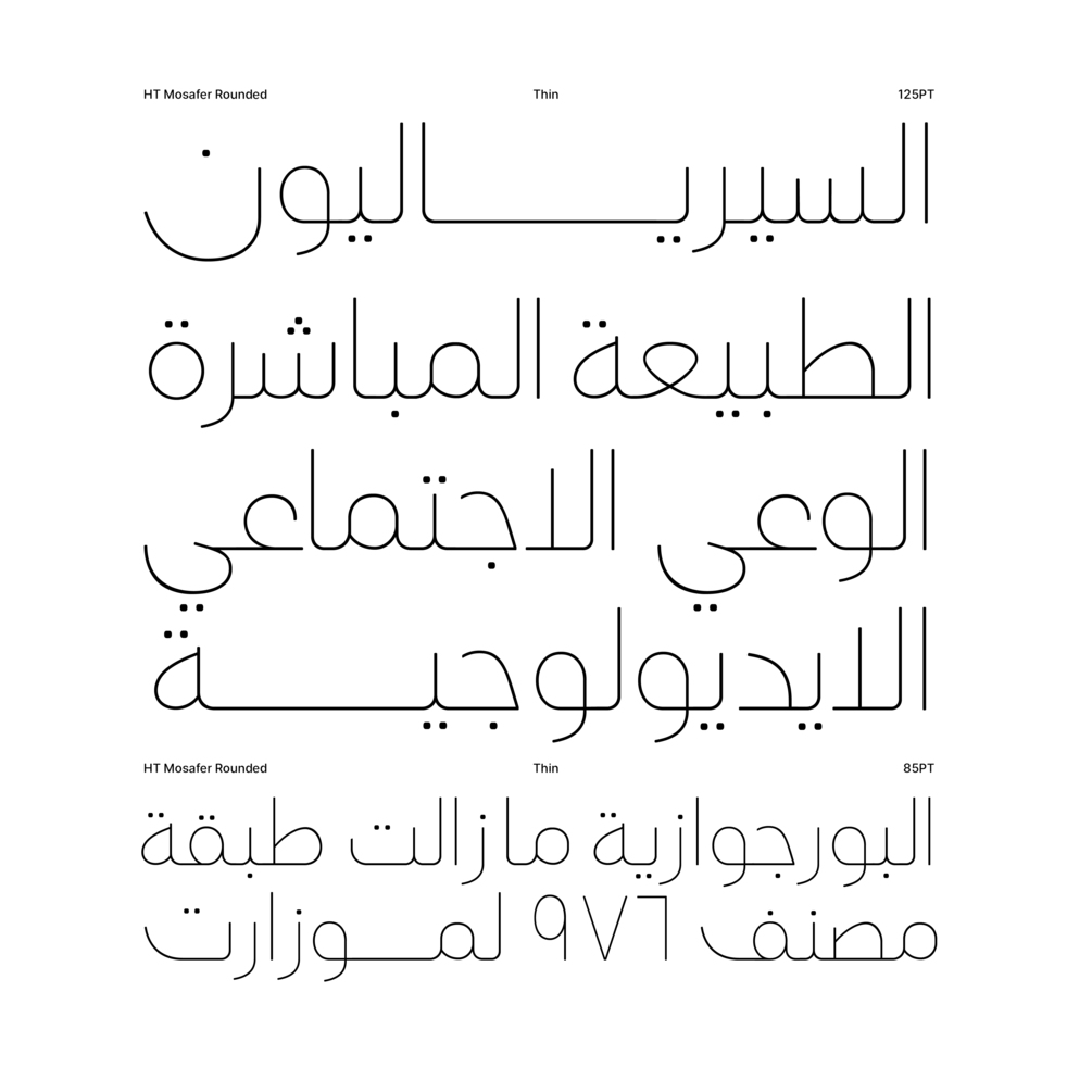 HT Mosafer Rounded type family includes 10 weights from Thin to Heavy.