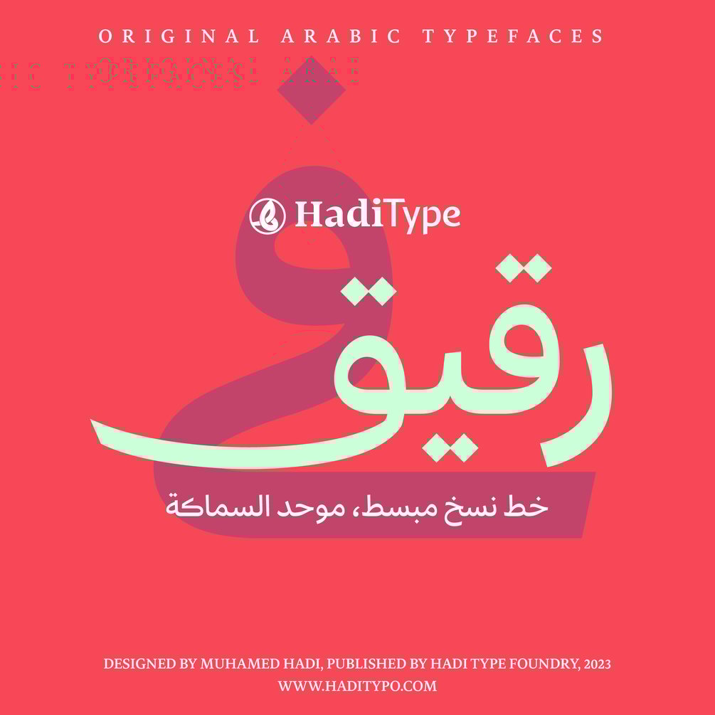 "HT Rakik" is a simplified, monolinear Naskh font with an Arabic essence in its letter design that enhances Arabic writing in the digital era. The font supports Arabic, Jawi, Urdu, Persian, and basic Latin languages, with five weights for design flexibility.